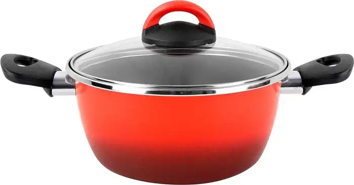 Кастрюля Vitrinor Sfumatto 20 сделана из эмалированной стали и имеет объем 2,9 литра. Диаметр посуды — 20 см, она окрашена в яркий красный цвет. Внутреннее покрытие из фторопласта облегчает приготовление и очистку. Кастрюля идет в комплекте с прозрачной стеклянной крышкой, которая позволяет следить за процессом готовки. Она подходит для всех типов плит, включая газовые, электро, стеклокерамические и индукционные. Ручка из бакелита обеспечивает безопасное и комфортное использование. Кастрюля пригодна для мытья в посудомоечной машине, что облегчает уход. Однако она не предназначена для использования в духовке и микроволновой печи. Ее конструкция обеспечивает равномерное распределение тепла и долговечность. Такую кастрюлю удобно использовать для приготовления各种 блюд в домашних условиях.