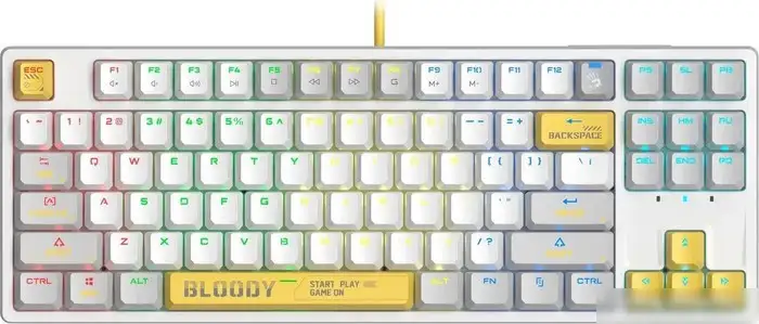 игровая для ПК, механическая, Bloody BLMS Red Plus, ход линейный/тихие, пластик, интерфейс подключения - USB-A, цвет серый/белый/желтый