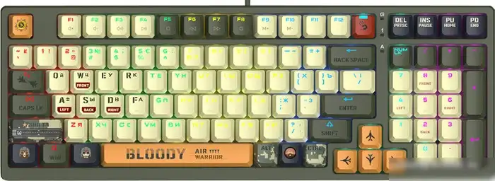 Клавиатура A4Tech Bloody S98 Aviator — игровая модель с механическими переключателями Bloody BLMS Red. Она имеет классическую форму и RGB-подсветку клавиш, которую можно настраивать под свои предпочтения. Благодаря заменяемым переключателям hot-swap вы можете легко менять их и адаптировать клавиатуру под свои нужды. Клавиатура подключается через USB Type-C с длиной кабеля 1,8 метра, что обеспечивает комфортное использование. Встроенная память позволяет сохранять настройки подсветки и макросы. Благодаря двум цифровым блокам и удобной форме, эта клавиатура подходит для долгих игровых сессий. Она изготовлена из прочного пластика и не имеет подставки под запястья, что помогает снизить усталость рук. В комплект входит набор сменных кейкапов и кабели для удобства настройки. Эта модель предназначена для ПК и обладает всеми необходимыми функциями для комфортной игры.