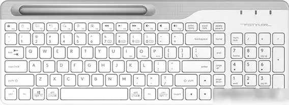 Клавиатура A4Tech Fstyler FBK25 обладает классическим дизайном в белом и сером цвете. Она подключается по Bluetooth или радио на расстояние до 10 метров, что обеспечивает свободу движений во время работы. Клавиши имеют низкую, строжную форму, удобно расположены для быстрого набора текста. Встроенный цифровой блок позволяет легко вводить числа, а отсутствие подсветки делает клавиатуру компактной и лёгкой. Корпус выполнен из прочного пластика, и клавиатура весит всего 469 грамм. Встроенная батарея типа AA обеспечивает автономную работу без проводов. Устройство совместимо с ПК, Apple и Android, что расширяет возможности использования. Она не имеет дополнительных функций, таких как подсветка или подключение через USB, что делает её простой и надежной. Эта клавиатура идеально подходит для тех, кто ценит комфорт и простоту в работе.