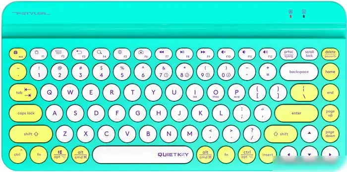 Клавиатура A4Tech Fstyler FBK30 (авокадо) — это компактное устройство с размером 80%, которая подходит для ПК, компьютеров Apple, iPad и устройств Android. Она подключается по беспроводной связи через Bluetooth или радиоинтерфейс с радиусом до 10 метров. Клавиши имеют штровую форму и выполнены из пластика, без подсветки, что делает их комфортными для длительного использования. Благодаря технологии мембранных переключателей, клавиатура обеспечивает тихую и мягкую работу. Она не имеет цифрового блока и дополнительных функций, таких как подсветка или подставка под запястья, что делает устройство лёгким и простым. Возможность переключения между несколькими устройствами позволяет быстро менять источник, не теряя времени. Высота клавиш и форма Энглеш-клавиш позволяют удобно набирать текст и управлять устройствами. В комплект входит батарейка типа AA, USB-приемник и удлинитель для адаптера, что обеспечивает удобство в использовании. Размеры клавиатуры небольшие, а вес всего 386 г, что делает её портативной и практичной в использовании.