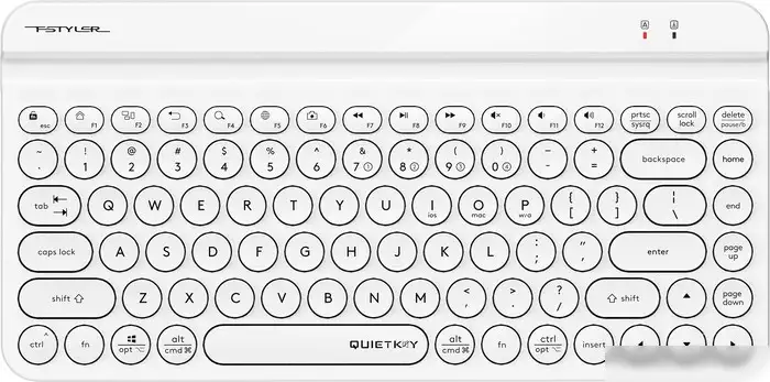 Клавиатура A4Tech Fstyler FBK30 выполнена в белом цвете и обладает компактным размером 80% (TKL), что позволяет экономить место на столе. Она подключается беспроводным способом через радиоинтерфейс или Bluetooth, что дает возможность удобно пользоваться до 10 метров. Клавиши выполнены с высокими и просторными стровными, без подсветки, что делает набор комфортным в любом освещении. Поддерживается работа с ПК, Apple, iPad, Android и HarmonyOS, что расширяет ее совместимость. Устройство не имеет цифрового блока и подсветки клавиш, но легко переключается между несколькими устройствами. Для питания используется одна батарейка AA, которая обеспечивает долгую работу без лишних проводов. В комплект входит USB-приемник, удлинитель адаптера и документация. Вес клавиатуры составляет всего 386 г, благодаря чему устройство удобно брать с собой. Эта клавиатура отлично подходит для тех, кто ищет простое и функциональное устройство для работы и отдыха.