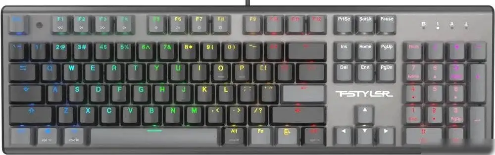 Клавиатура A4Tech Fstyler FS100 Neon — это стандартная полноразмерная клавиатура с механическими переключателями. Она подключается к компьютеру через USB и имеет классическую высокую форму клавиш. Цветовая подсветка клавиш не настраивается, что делает использование ярким и стильным. Размеры клавиатуры позволяют удобно пользоваться ей на рабочем столе, а длина кабеля 1.8 метра обеспечивает свободу движения. Клавиатура выполнена из прочного пластика и весит около 1230 грамм, что делает её устойчивой и надежной. Также она оснащена цифровым блоком для быстрого ввода чисел.