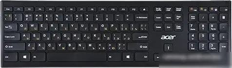Клавиатура Acer OKR010 — стандартная беспроводная модель с радиосоединением на расстоянии до 10 метров. Она подключается к ПК без проводов и работает на двух батарейках типа AAA. Корпус сделан из прочного пластика и имеет низкие, строчные клавиши для удобства набора текста. В клавиатуре есть цифровой блок, что облегчает работу с цифрами. Она не оснащена подсветкой клавиш или подставкой для запястий, поэтому подходит для простых задач. Структура клавиш позволяет быстро и точно вводить команды. Размеры устройства компактные и легко умещаются на столе. Легкий вес — всего 435 грамм, что делает ее удобной для переноски и использования в любом месте. Простая и надежная, эта клавиатура отлично подходит для повседневной работы за компьютером.