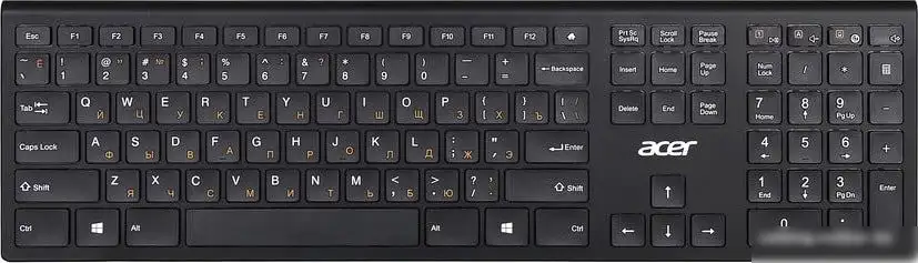 Клавиатура Acer OKR020 — это стандартное устройство для ПК с мембранными переключателями и черным цветом корпуса. Она подключается беспроводным способом через радиоинтерфейс и работает на расстоянии до 10 метров. Клавиши имеют низкую островную форму, что обеспечивает комфорт при наборе. В клавиатуре есть цифровой блок, который помогает быстро вводить числа. Ее корпус выполнен из прочного пластика, а размеры позволяют легко разместить устройство на рабочем столе. В комплект входит USB-передатчик и документация для быстрого начала работы. Клавиатура не оснащена подсветкой, подставкой под запястье или дополнительными функциями, но выполняет основные задачи для работы и общения. Вес устройства составляет 430 грамм, а размеры — примерно 44 см по ширине и 2,5 см в толщину, что делает её компактной и удобной в использовании.