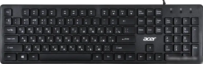Клавиатура Acer OKW020 — это стандартное устройство с классической формой клавиш и высоким профилем, предназначенное для использования с ПК. Она подключается через USB-A, что обеспечивает стабильное соединение и удобство в работе. В клавиатуре есть цифровой блок, который помогает быстро вводить числовые данные. Корпус сделан из прочного пластика, а длина кабеля составляет 1,5 метра, что позволяет удобно расположить устройство на столе. Клавиши не подсвечиваются, поэтому клавиатура подойдет для освещенных помещений. Ее размеры — 440 мм по ширине и 129 мм по длине, а вес 483 г делает её легкой и мобильной. Устройство не имеет встроенной подсветки, подставки или дополнительных функций, что делает её простым и надежным инструментом для работы. Она хорошо подходит для тех, кто ищет недорогую и проверенную клавиатуру с понятным интерфейсом. Выполненная из пластика, она долговечна и легко чистится. Эта клавиатура идеально подойдет для повседневных задач и офисной работы без лишних функций.