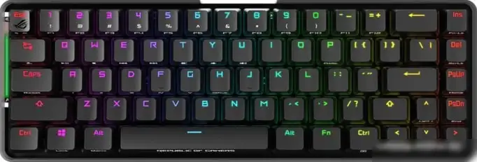 Клавиатура ASUS ROG Falchion — это игровая модель с механическими переключателями Cherry MX RGB, которая обеспечивает быструю и точную реакцию во время игр. Она подключается по USB или радио на расстоянии до 20 метров, предоставляя свободу движений. На клавиатуре есть встроенная память, благодаря которой пользователь сохраняет настройки и макросы. У неё есть подсветка Aura Sync, которая позволяет настроить внешний вид по своему вкусу. Сенсорная панель упрощает управление, а время работы без подзарядки составляет до двух недель. Корпус изготовлен из прочного пластика, а размеры — компактные и удобные для использования на любой поверхности. Устройство обладает классической форму клавиш без цифрового блока, что помогает сэкономить место. Этот дизайн подходит для тех, кто ценит функциональность и комфорт в игровой или рабочей деятельности.