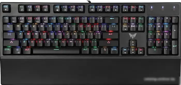 Клавиатура CrownMicro CMGK-902 — это игровая механическая клавиатура с стильным черным дизайном и RGB-подсветкой, которая украшает клавиши и помогает ориентироваться в темноте. Она подключается через USB и имеет кабель длиной 2 метра с оплеткой для защиты и долговечности. Корпус выполнен из металла, что делает устройство прочным и устойчивым. В клавиатуре установлен переключатель Outemu Brown, который обеспечивает мягкое и отзывчивое нажатие, идеально подходящее для игр и работы. Клавиши имеют классическую форму, а цифровой блок поможет быстро вводить цифры. Для комфорта есть встроенная подставка под запястья, чтобы снизить усталость при длительном использовании. Размеры клавиатуры делают её удобной для размещения на рабочем столе, а вес обеспечивает стабильность во время игры. Встроенная RGB-подсветка позволяет выбрать яркий эффект и настроить подсветку под свой стиль. Простая и понятная, эта клавиатура хорошо подходит как для игр, так и для повседневных задач.