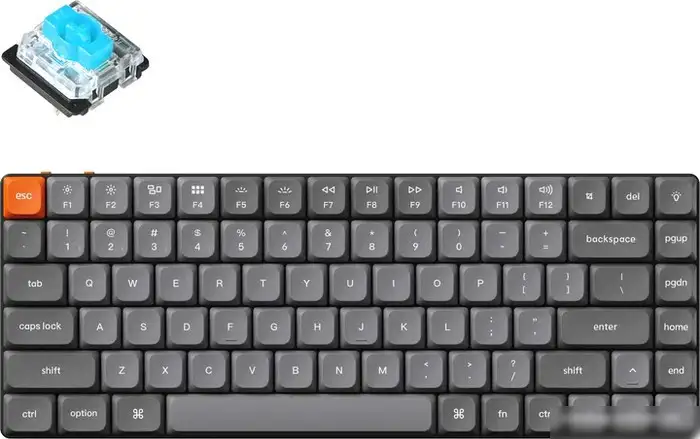 игровая для ПК/для компьютеров Apple/для iPad/для устройств Android, механическая, Gateron Low Profile Blue 2.0, ход тактильный/с кликом/низкопрофильный, пластик с металлической рамкой, интерфейс подключения - USB-A/радио/Bluetooth, цвет серый