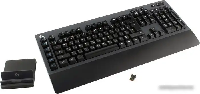 Клавиатура Logitech G613 920-008393 — это игровая клавиатура, которая работает беспроводным способом через радио или Bluetooth. Она предназначена для ПК и устройств Android и не имеет кириллицы на клавишах. Его механические переключатели Logitech Romer-G Tactile обеспечивают тактильное ощущение с хорошей реакцией — срабатывание при силе 45 г и точке срабатывания на 1,5 мм. Клавиатура имеет классическую форму с высокими клавишами и цифровой блок, а также подставку под запястья, которая помогает сохранить комфорт при долгой игре или работе. Она легко переключается между несколькими устройствами, что очень удобно. В комплект входит USB-приемник, подставка для телефона, кабель, батарейки и документация. Размеры клавиатуры — 478 мм в ширину, 216 мм в длину и 33 мм в толщину, а вес — 1410 г.