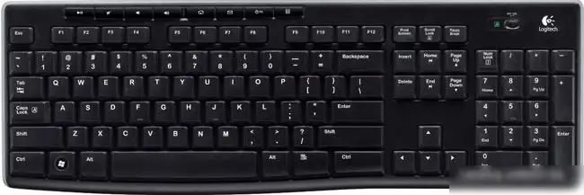Клавиатура Logitech Wireless Keyboard K270 — это удобное устройство для работы с компьютером. Она подключается по радио и не занимает много места на столе. Корпус сделан из прочного пластика и имеет классическую форму. На клавиатуре есть дополнительные кнопки для быстрого управления мультимедийными функциями. Размеры позволяют легко разместить её на рабочем столе, а легкий вес — просто переносить устройство. Клавиши расположены компактно и удобно для длительной работы. Отсутствие подсветки и сенсорной панели не мешают использованию. Эта клавиатура обеспечивает стабильное соединение и комфортную работу без проводов. Она отлично подходит для домашнего и офисного использования.