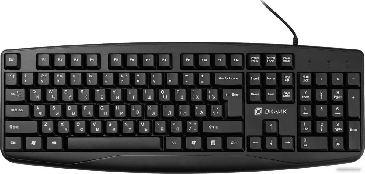 Клавиатура Oklick 105M — это стандартная полноразмерная модель, предназначенная для компьютеров. Она подключается через USB-A и не имеет беспроводных функций. Клавиши выполнены в классическом высоком стиле без подсветки, что помогает удобно набирать текст. Цифровой блок позволяет быстро вводить числа, а форма клавиш обеспечивает комфорт при использовании. Корпус сделан из пластика, а длина кабеля составляет 1,8 метра — это удобно для расположения на рабочем месте. Модель не имеет подставки для запястий или дополнительных функций, таких как подсветка или мультимедийные кнопки. В устройстве отсутствуют функции защиты от пыли и влаги, а также дополнительные интерфейсы. Она лёгкая и компактная, её можно легко разместить даже в небольшом пространстве.