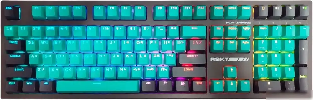 игровая для ПК, механическая, Raskat Custom White, ход тактильный, пластик, интерфейс подключения - USB-A, кириллица: да, цвет черный/бирюзовый