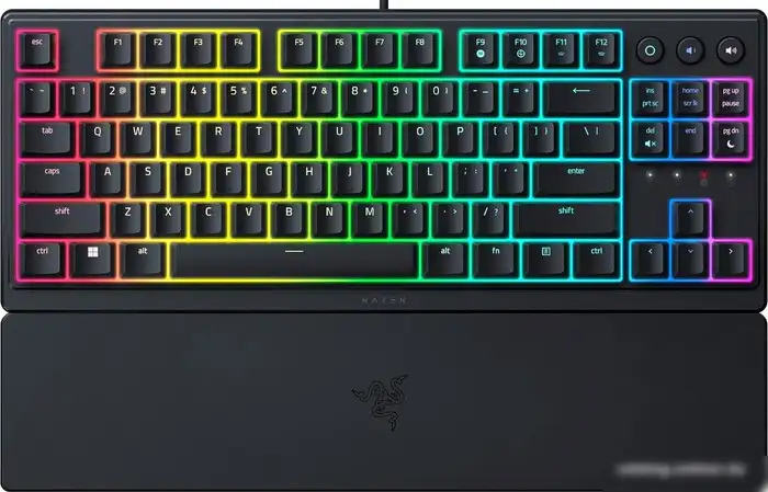 Клавиатура Razer Ornata V3 TKL — это игровая клавиатура с классическим дизайном и размером 80%, которая отлично подойдет для компьютера. Она оснащена механико-мембранными переключателями Razer Mecha-Membrane, которые обеспечивают приятное тактильное ощущение при наборе текста и играх. Клавиатура имеет многоцветную подсветку, которую можно не настраивать для создания яркой атмосферы во время игр или работы. Благодаря съемной подставке под запястье, играть или работать становится более удобно, а оплетка кабеля защищает его и продлевает срок службы. Устройство подключается через устойчивый кабель USB-A длиной 2 метра, что дает простор для установки. В клавиатуре нет дополнительных функций, но ее качество и комфорт делают ее хорошим выбором для тех, кто ценит простоту и надежность.