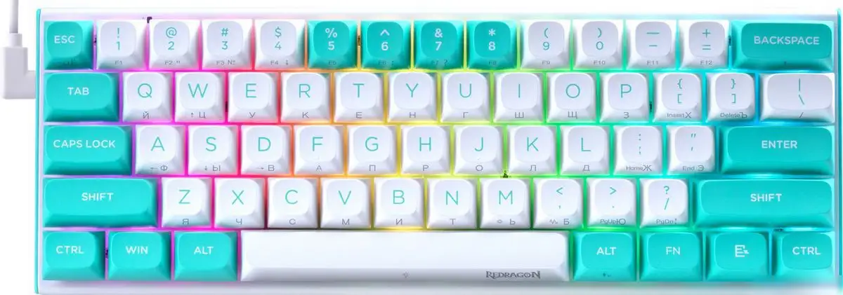 игровая для ПК, магнитная, Redragon Magnetic, ход линейный/тихие, пластик, интерфейс подключения - USB-A, цвет белый/бирюзовый