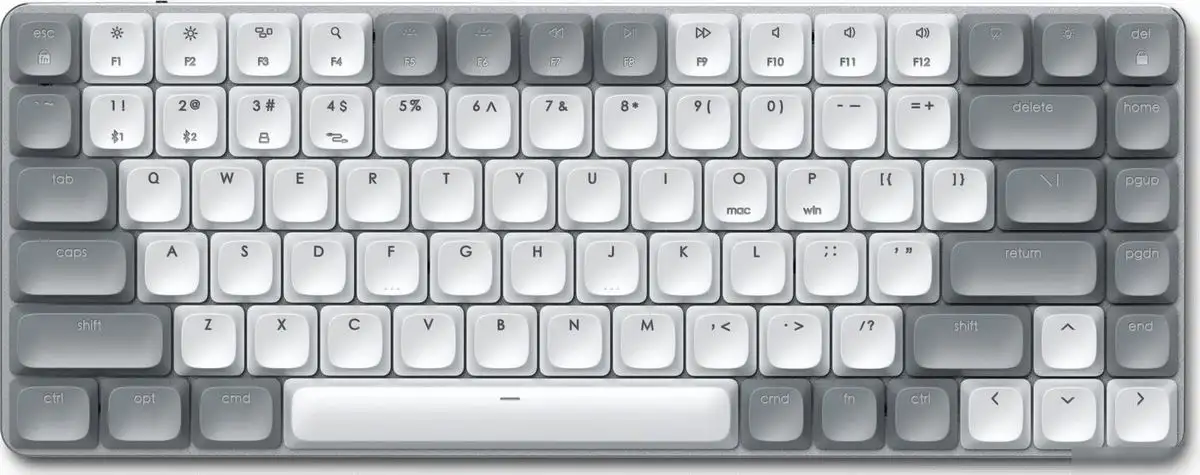 стандартная для ПК/для компьютеров Apple/для iPad/для устройств Android, механическая, ход тактильный, пластик с металлической рамкой, интерфейс подключения - USB-A/Bluetooth, подсветка, кириллица: да, цвет серый