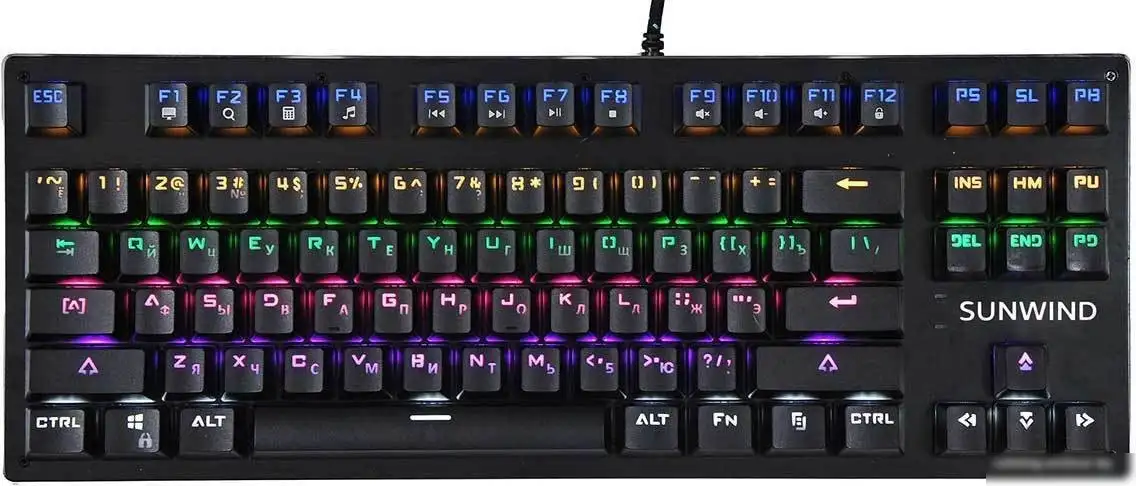 Клавиатура SunWind SW-K900G — это игровая модель с размером 80%, которая подходит для ПК. Она выполнена в классическом стиле с высокой формой клавиш и имеет яркую подсветку для удобства в темноте. Клавиатура подключается через USB-A и оснащена оплеткой кабеля для дополнительной прочности. Механические переключатели обеспечивают быструю реакцию и долговечность. Корпус сделан из металла, что придает устройству надежность и прочность. Высота клавиш, как у стандартных клавиатур, способствует комфортной работе и играм. У клавиатуры есть кириллица, что удобно для русскоязычных пользователей. Благодаря небольшой глубине и легкому весу, она хорошо лежит в руке и легко переносится. Встроенная память отсутсвует, но наличие подсветки делает использование в любой ситуации приятным.
