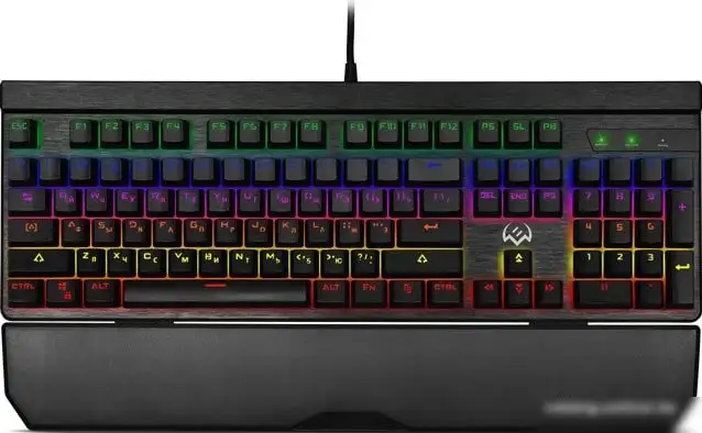 Клавиатура SVEN KB-G9500 — это игровая модель с механическими переключателями, которая подходит для использования на ПК. Она выполнена в классическом черном цвете и имеет высокие клавиши для удобства. Клавиатура оснащена подсветкой клавиш, что помогает играть или работать в темноте. В комплекте есть съемная подставка под запястье, которая делает использование более комфортным. Обладает встроенной памятью, что позволяет сохранять настройки. Диапазон работы составляет около 1.8 метра. Эта клавиатура не беспроводная и подключается через USB-A.