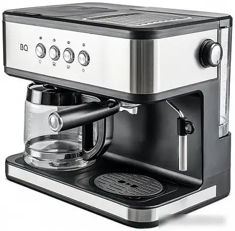 капельная кофеварка/рожковая бойлерная кофеварка, 1850 Вт, корпус металл/пластик, капучинатор ручной, используемый кофе: молотый, цвет нержавеющая сталь/черный