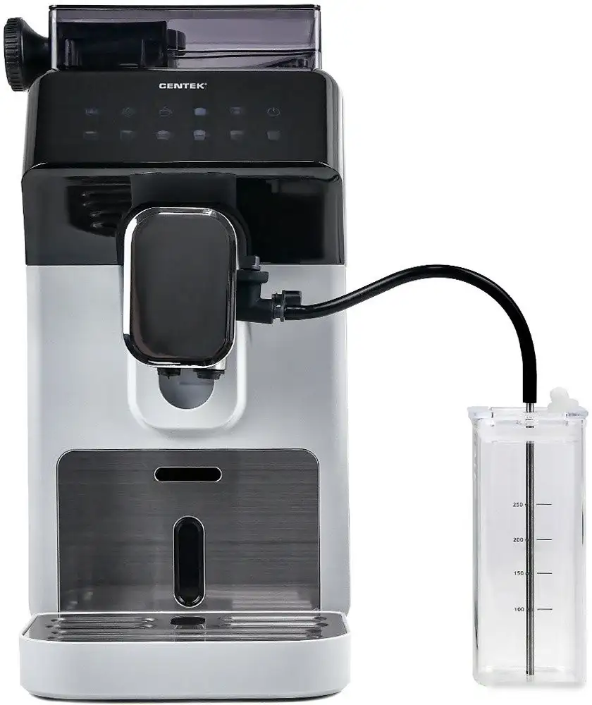 Кофемашина CENTEK CT-1191 предназначена для домашнего использования и легко встраивается в кухонный интерьер благодаря своему современному дизайну. Она работает от электросети и имеет мощность 1450 Вт, что обеспечивает быстрое приготовление напитков. Машина создаёт давление 15 бар, которое идеально подходит для приготовления эспрессо, капучино и других кофе-напитков. Емкость для воды составляет 2 литра, а для молока — 0.25 литра, что позволяет готовить несколько напитков подряд. Управление осуществляется сенсорной панелью, а автоматический капучинатор помогает приготовить молочные напитки быстро и удобно. Вы можете регулировать высоту чашек и использовать функцию подачи горячей воды, что расширяет возможности приготовления. Есть возможность регулировать помол кофе, чтобы добиться нужного вкуса. Также машина поддерживает автоматическую очистку от накипи, что облегчает уход за устройством. Большое руководство для пользователей обеспечивает комфортное использование и разнообразие кофе-напитков.