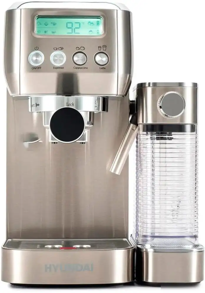 Рожковая кофеварка Hyundai HEM-9999 подойдет для домашнего использования. Она работает от сети и имеет мощность 1350 Вт, а давление 20 бар обеспечивает высокий качество эспрессо. Емкость для воды составляет 1.3 литра, а для молока — 0.8 литра, что позволяет готовить несколько напитков подряд. Управляется устройство электролюминиевым дисплеем, который показывает режимы и параметры приготовления. Вы можете регулировать температуру и объем порции для идеального вкуса. Встроенный капучинатор позволяет удобно делать капучино и латте в один клик. Площадка для подогрева чашек сохраняет их тепло во время приготовления. Корпус выполнен из металла и пластика в серебристом цвете, что делает дизайн современным. Устройство не подключается к водопроводу и не имеет автоматической чистки. Его размеры — 21.5 х 30.8 х 33 см, что помогает расположить его даже на небольшой кухне.