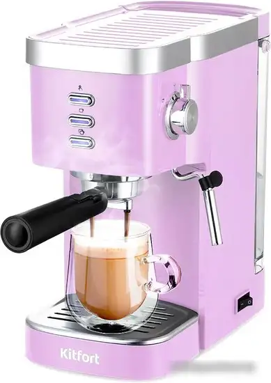 Рожковая кофеварка Kitfort KT-7114-3 предназначена для домашнего использования. Она работает от сети и имеет мощность 1470 Вт, что позволяет быстро приготовить кофе. В аппарате есть регулировка объема порции и ручной капучинатор, что помогает создать любимый напиток. Корпус выполнен из прочного пластика сиреневого цвета, а объем для воды составляет 1,2 литра. Управление производится с помощью светодиодных индикаторов и механической ручки.