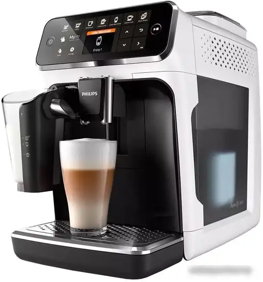 Эспрессо кофемашина Philips EP4343/50 предназначена для использования в домашних условиях и легко управляется сенсорным ЖК-экраном. Она позволяет готовить разнообразные напитки — эспрессо, капучино, латте, американский и другие благодаря автоматическим программам и регулировкам температуры, крепости и объема. Мощность устройства 1500 Вт, давление 15 бар обеспечивает качественный кофе и пышную пену. Встроенный капучинатор позволяет регулировать пышность молочной пены и подогревать чашки, что делает напитки особенно вкусными. Объем для воды составляет 1.8 литра, а емкость для молока — 0.265 литра, что хватает на несколько порций без дозагрузки. Пользователи могут сохранять два пользовательских профиля для быстрого приготовления любимых напитков. Машина автоматически очищается от накипи, а фильтр AquaClean помогает уменьшить использование воды и соли. Вес устройства 8 кг, оно занимает немного места и легко впишется в любую кухню.