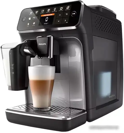 Эспрессо кофемашина Philips EP4346/70 — это удобное устройство для приготовления разнообразных кофе и напитков, таких как эспрессо, капучино, латте макиато и другие. Машина управляется сенсорным ЖК-экраном, что облегчает настройку и работу. У неё есть автоматический капучинатор, который регулирует пышность молочной пены и позволяет наслаждаться напитками одним нажатием. Встроенная емкость для воды на 1.8 литра и резервуар для молока объемом 0.265 литра позволяют готовить сразу несколько порций без постоянной дозаправки. Машина регулирует крепость, температуру, объем и помол кофе — всё по вашему вкусу. Используйте встроенные программы для быстрого приготовления любимых напитков. Благодаря функциям автоматической очистки и фильтру AquaClean, уход за машиной становится проще. Компактные размеры и современный дизайн делают устройство удобным и стильным дополнением кухни.