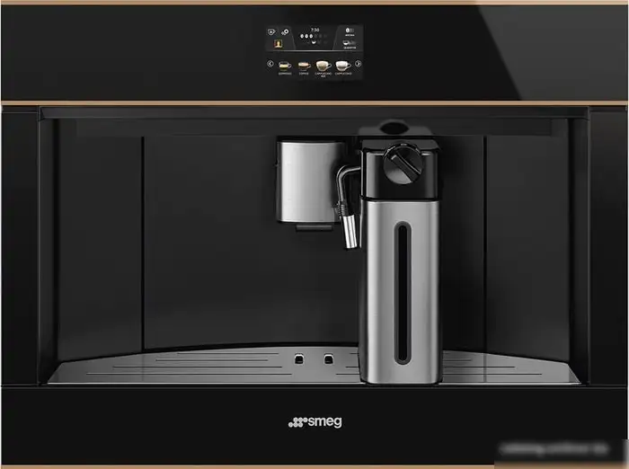 Эспрессо кофемашина Smeg CMS4604NR — это встроенное устройство, которое позволяет быстро и удобно приготовить разные кофе-напитки. Она работает при давлении 15 бар и мощностью 1350 Вт, что обеспечивает качественный вкус напитков. Встроенный цветной ЖК-экран и сенсорное управление делают настройку легкой и понятной. Машина регулирует крепость, температуру и объем порции, чтобы ответить любым предпочтениям. В ней есть автоматический капучинатор и возможность регулировки молочной пены, что удобно при приготовлении капучино или латте макиато. Объем для воды 1.8 литров, а для кофе — 220 г, этого достаточно для нескольких порций подряд. Устройство имеет функцию автоматической чистки и промывки, что помогает поддерживать его в чистоте. Можно сохранять личные программы приготовления и разместить чашки на подогреве. Также есть возможность регулировать высоту чашек и подать горячую воду.