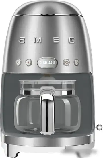 Капельная кофеварка Smeg DCF02SSEU обладает стильным корпусом из нержавеющей стали и мощностью 1050 Вт, что позволяет быстро приготовить до 10 порций кофе. Она управляется электронным сенсорным экраном с подсветкой, что делает использование простым и удобным. Встроенная противокапельная система предотвращает капание, когда вы обжариваете кофе. Емкость для воды составляет 1,4 литра, что обеспечивает длительный цикл приготовления без дозаправки. Вы можете регулировать крепость напитка по двум уровням, чтобы подобрать вкус по своему желанию. В комплект входит фильтр в нейлоновом корпусе для чистки кофе. Кофеварка легко очищается благодаря встроенной функции автоматической промывки и очистки от накипи. Устройство легко занимает мало места, его размеры – около 24,5×25,6×36,1 см. С помощью данного устройства вы быстро и удобно приготовите свежий кофе в домашних условиях на каждый день.