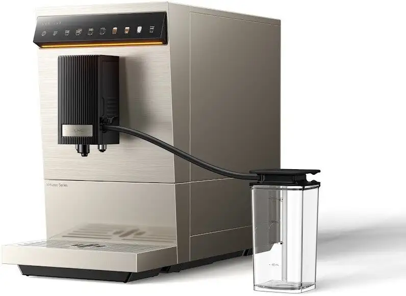 Кофемашина Trouver Virtuoso 10 Pro выполнена из металла и пластика и имеет золотистый корпус. Она подходит для домашнего использования и подключается к сети с мощностью 1470 Вт и давлением 19 бар. Машина оснащена двумя бойлерами и емкостью для воды 1,5 л, а также внешним отсеком для молока объемом 0,5 л. Управление происходит с помощью сенсорных кнопок, а светодиодная индикация показывает параметры работы. В ней можно готовить разнообразные напитки: эспрессо, лунго, американо, капучино, латте макиато и горячее молоко. Вы можете регулировать степень помола, крепость и температуру на 3 уровнях, чтобы добиться желаемого вкуса. Кофемашина автоматически промывает диспенсер и капучинатор, что облегчает очистку. Также она подает горячую воду и позволяет быстро приготовить капучино или латте макиато одним нажатием. Ее размеры небольшие — ширина 18,8 см, глубина 43,7 см и высота 31,5 см, что удобно для установки на кухне.
