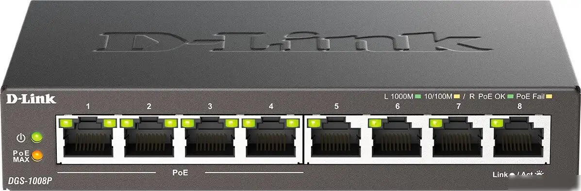 Неуправляемый коммутатор D-Link DGS-1008P/F3A