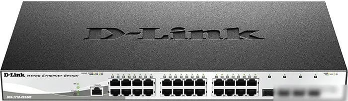 Коммутатор D-Link DGS-1210-28X/ME — это управляемое устройство второго уровня, выполненное в стойке, предназначенное для сетей с высокой нагрузкой. Он имеет 24 гигабитных порта и 4 слота SFP+ для подключения оптоволокна, что обеспечивает быструю передачу данных. Объем буфера в 1,5 Мб и таблица MAC-адресов на 16 тысяч позволяют обрабатывать большое количество устройств и данных без задержек. Скорость пересылки пакетов достигает 95.24 Mpps, а его пропускная способность — 128 Гбит/с. Поддержка таких функций, как управление потоком, Spanning Tree, VLAN (включая Q-in-Q), мультикаст-соединения и QoS, помогает управлять трафиком и повышать безопасность. Множество методов безопасности, включая 802.1x, ACL, Port Security, а также протоколы SSH и SSL, защищают сеть от несанкционированного доступа. Устройство управляется через веб-интерфейс, CLI, Telnet и SNMP, что удобно для администрирования. Кроме того, коммутатор обладает функциями сегментации трафика, зеркалирования портов и управления полосой пропускания, что делает его идеальным выбором для крупных организаций и центров обработки данных.