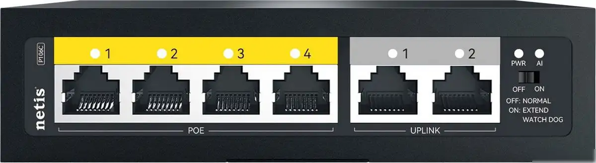 Неуправляемый коммутатор Netis P106C прост в использовании и отлично подходит для небольших сетей. Он оснащён 6 портами Fast Ethernet и поддерживает питание по технологии PoE, что позволяет подключать и питать устройства, например, камеры или точки доступа, без необходимости отдельных кабелей питания. Устройство обеспечивает скорость передачи данных до 1.2 Гбит/с и имеет таблицу MAC-адресов на 2000 записей, что ускоряет обработку данных в сети. Пассивное охлаждение делает его надёжным и тихим в работе. Коммутатор управляет потоком данных с помощью функции flow control и поддерживает jumbo frame до 2048 байт, что увеличивает эффективность при передаче больших файлов. Его компактные размеры позволяют легко установить на стол или повесить на стену. Для защиты сети отсутствуют функции VLAN и SNMP, что делает устройство простым и безопасным для базовых нужд. В комплект входит кабель питания и документация, устройство готово к подключению сразу после распаковки.