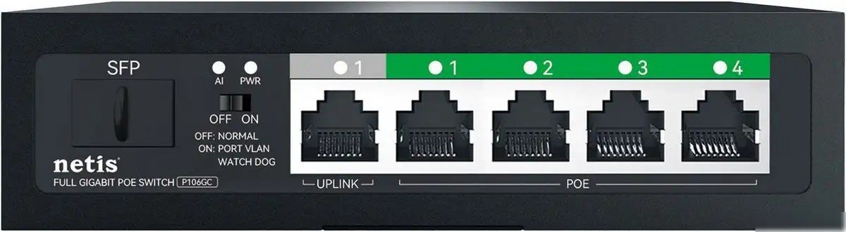 Неуправляемый коммутатор Netis P106GC предназначен для небольших сетей и прост в использовании. Он оснащён пятью портами Gigabit Ethernet, что обеспечивает быструю передачу данных. Этот коммутатор поддерживает функцию управления потоком (802.3x), которая помогает избегать перегрузки сети. Он оборудован одним слотом SFP для подключения оптоволоконных кабелей и расширения сети. Модель имеет таблицу MAC-адресов на 2000 записей, что облегчает управление устройством. Его компактный размер позволяет легко разместить устройство в любом месте. Коммутационная матрица с пропускной способностью 12 Гбит/с обеспечивает быструю обработку данных. В коммутаторе есть функция VLAN (802.1q), которая помогает разделить сетевые сегменты для безопасности и удобства. Он также поддерживает питание PoE (до 60 Вт на 4 порта), что позволяет питать совместимые устройства напрямую через кабель. Это устройство отлично подходит для расширения и объединения локальной сети без сложного управления.