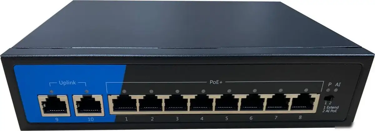 неуправляемый, настольный, 10x100Mbit, PoE, бюджет 120 Вт