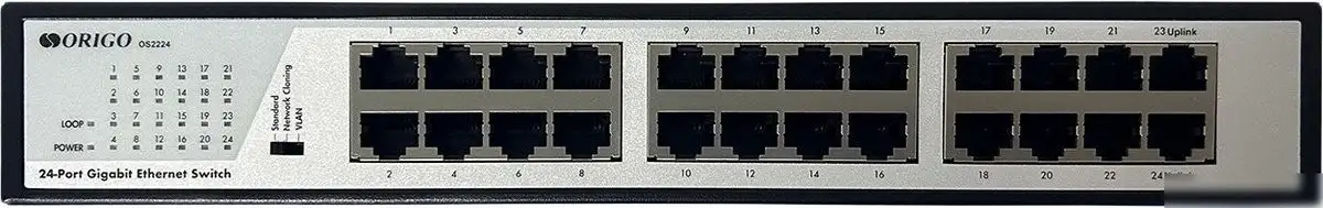 | Комплектация | • Коммутатор OS2224 • Кабель питания • Комплект для установки в 19-дюймовую стойку • Резиновые ножки • Краткое руководство по установке |