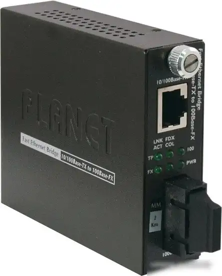 Медиаконвертер PLANET FST-802 предназначен для преобразования сигнала между медными кабелями и оптическим подключением. Он поддерживает один порт Fast Ethernet с разъёмом SC для надежного оптического соединения. Устройство работает с блоком питания 5 В и имеет пассивное охлаждение, что обеспечивает его долговечность и низкий уровень шума. Размеры конвертера — 94х81х26 мм, вес — всего 220 г, что делает его компактным и легким для установки. Он не поддерживает питание по Ethernet (PoE) и USB-порты. Устройство идеально подходит для расширения сети и соединения устройств на большие расстояния. Планет FST-802 проста в использовании и не требует настройки. Это надежное решение для передачи данных в промышленных и офисных сетях.