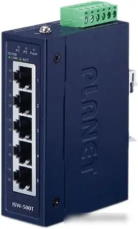 Коммутатор PLANET ISW-500T — неуправляемое устройство, которое работает через DIN-рейку и обеспечивает скорость передачи данных до 1 Гбит/с. Он оснащён пятью портами Fast Ethernet и поддерживает управление потоком данных с помощью стандарта 802.3x, что помогает избегать перегрузки сети. Благодаря функции VLAN и аутентификации 802.1x, устройство помогает защитить сеть от несанкционированного доступа. Встроенная поддержка Green Ethernet (802.3az) снижает потребление электроэнергии и экономит ресурсы. Устройство легко устанавливается и занимает мало места — его размеры 70x104x30 мм, вес всего 255 г. Оно не поддерживает PoE и не оснащено портами USB или SFP, что делает его простым в использовании. Коммутатор подходит для небольших сетей, обеспечивая стабильную работу и безопасность. Он не управляется по SNMP, однако обеспечивает управление потоком для предотвращения потерь данных.