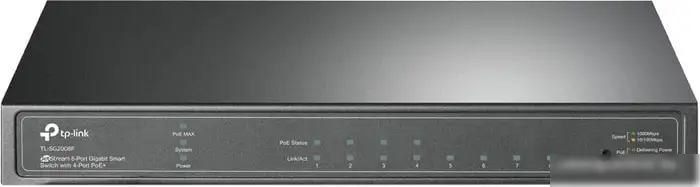 Коммутатор TP-Link TL-SG2008P — это настольное устройство с 8 гигабитными портами, которое легко настраивается и управляется. Он поддерживает питание по технологии PoE (62 Вт), что позволяет подключать и питать IP-камеры, телефоны и другие устройства через сеть. Благодаря функции управления потоком и расширенным возможностям QoS, он обеспечивает приоритет обработки важных данных. В устройство встроен буфер объемом 4.1 МБ и таблица MAC-адресов на 8000 записей, что повышает скорость обработки пакетов. Он поддерживает виртуализацию VLAN (802.1Q), а также обеспечивает безопасность с помощью протоколов SSH, SSL и 802.1x. Управляют коммутатором через веб-интерфейс, CLI или фирменную утилиту, а также используют SNMP для мониторинга. Он защищает сеть от широковещательного шторма и поддерживает расширенную безопасность. Помимо этого, он обладает пассивным охлаждением, компактными размерами и небольшим весом, что делает его удобным в использовании и установке.