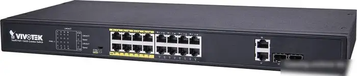 Коммутатор Vivotek AW-FGT-180D-250 — это неуправляемое устройство, предназначенное для работы в сетях с высокой скоростью передачи данных. Он оснащён 16 портами Fast Ethernet и двумя комбонижами 10/100/1000BASE-T/SFP, что позволяет подключать разные устройства и расширять сеть по необходимости. Максимальная скорость пересылки пакетов достигает 5.4 млн в минуту при пропускной способности 7.2 Гбит/с. Коммутатор поддерживает питание по PoE, что удобно для подключения IP-камер и других устройств с этим стандартом, обеспечивая мощность до 250 Вт. Размеры устройства позволяют легко разместить его на стойке или в оборудовательной. Он не содержит активных систем охлаждения или резервных источников питания, что делает его более простым и надёжным. Для обеспечения безопасности и качества передачи данных отсутствуют функции управления потоком, VLAN и SNMP. Встроенная опция Jumbo frames увеличивает производительность при обмене большими файлами. По своим характеристикам, этот коммутатор подходит для организации сетей, требующих быстрой передачи данных и поддержки PoE. Он не поддерживает управление через Telnet, SSH или протоколы для расширенной настройки. В целом, AW-FGT-180D-250 — это прочное и простое решение для сетевых задач.