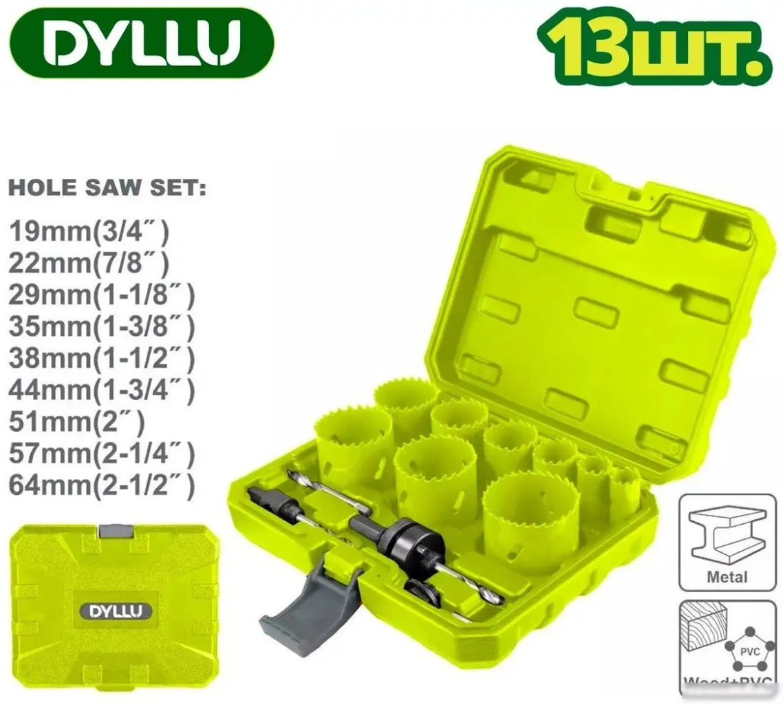 Этот набор коронок Dyllu DTKJ3413 поможет вам быстро и точно просверлить отверстия в различных материалах. В комплекте есть 9 пильных коронок с разными диаметрами — от 19 до 64 мм, что дает большую гибкость при работе. Эти коронки предназначены для сухого сверления, что упрощает использование и исключает необходимость в воде или специальных охлаждающих средствах. Каждая коронка имеет центрирующее сверло, которое обеспечивает точное позиционирование на поверхности. Они подходят для создания отверстий различного размера, что пригодится при ремонте, строительных и монтажных работах. Конструкция коронок позволяет сверлить быстро и без лишних усилий. Используйте эти коронки для работы с деревом, гипсокартоном, пластиком и другими мягкими материалами. Компактный набор легко хранить и брать с собой на разные объекты. Обеспечивайте аккуратность и эффективность работы с помощью этого надежного инструмента.