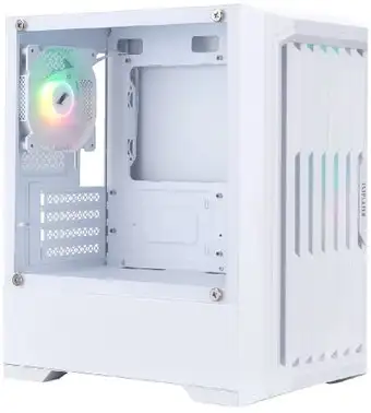 Корпус 1stPlayer Bullet Hunter H2 ARGB белого цвета подходит для Mini Tower форм-фактора и поддерживает материнские платы micro-ATX и mini-ITX. Он позволяет установить процессорный кулер высотой до 165 мм и видеокарту длиной до 310 мм, а также блок питания длиной до 160 мм. В корпусе есть прозрачное закаленное стекло, через которое видно внутренние компоненты, и есть пылевые фильтры сверху и снизу для защиты от пыли. Он оборудован четырьмя предустановленными вентиляторами: три спереди и один сзади, что помогает эффективно охлаждать систему. Вентиляторы поддерживают управление оборотами (PWM) и имеют многоцветную адресную подсветку ARGB, создавая эффектный внешний вид. В корпусе есть место для систем жидкостного охлаждения до 240 мм, а также секции под жесткие диски 2.5 и 3.5 дюймов. Система оснащена разнообразными USB-разъемами, включая USB 3.2 Gen 1 и USB 3.2 Gen 2x2, для быстрого подключения периферии. Размеры корпуса — 400 мм в высоту, 210 мм в ширину и 360 мм в глубину, что делает его компактным и удобным для сборки.