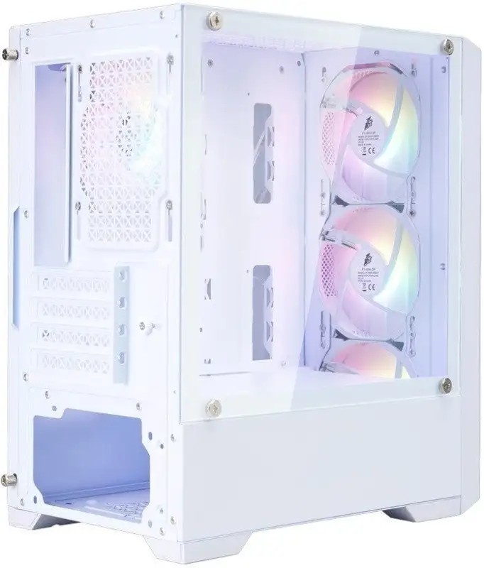 Mini Tower, БП отсутствует, для плат micro-ATX/mini-ITX, с 4 вентиляторами в комплекте, окно: закаленное стекло, видеокарта до 310 мм, охлаждение ЦП до 165 мм, пылевые фильтры, 1xUSB 2.0, 1xUSB-A 3.2 5Гбит/с, цвет белый