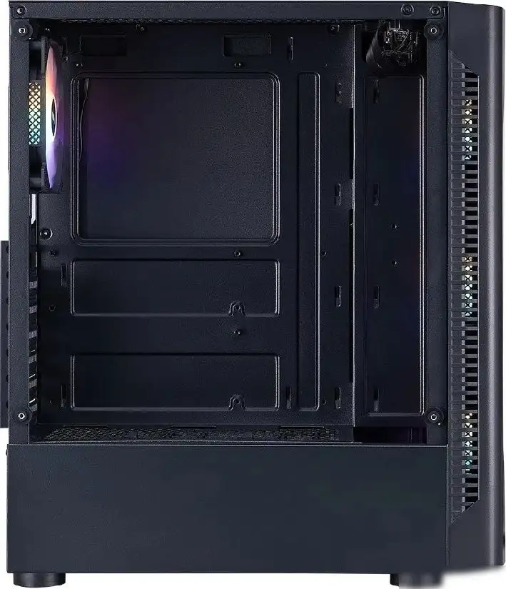 Корпус 1stPlayer DK D4 FRGB представлен в классическом черном цвете и выполнен из прочных материалов — пластика, металла и закаленного стекла, что создает стильный внешний вид. Он подходит для материнских плат форматов ATX, micro-ATX и mini-ITX и способен вместить процессорный кулер высотой до 160 мм и видеокарту длиной до 305 мм. В корпусе есть место для установки до 8 вентиляторов, из которых уже установлено 4: три спереди по 120 мм и один сзади. Управление скоростью вентиляторов происходит через встроенный контроллер PWM, что помогает снизить шум и улучшить охлаждение. Также корпус поддерживает жидкостное охлаждение радиатором до 240 мм. Передняя панель оборудована быстрым доступом к портам USB 3.2 Gen1, USB 2.0 и аудиовходам для удобства подключения устройств. На передней панели расположено прозрачное стекло с подсветкой, что придает корпусу современный внешний вид. Внутри есть отсек для одного накопителя формата 2.5 дюймов, и корпус оснащен пылевыми фильтрами сверху и снизу для защиты компонентов. Благодаря просторной конструкции и хорошей вентиляции, этот корпус подходит как для стандартных, так и для высокопроизводительных систем.