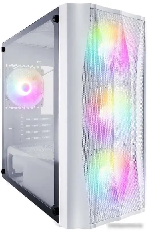 Mini Tower, БП отсутствует, для плат micro-ATX/mini-ITX, в комплекте 4 вентилятора, окно: закаленное стекло, 2xUSB 2.0, 1xUSB-A 3.2 5Гбит/с, цвет белый