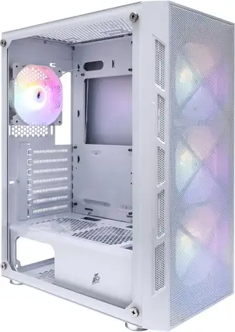 Mid Tower, БП отсутствует, для плат ATX/micro-ATX, в комплекте 4 вентилятора, окно: закаленное стекло, видеокарта до 320 мм, охлаждение ЦП до 165 мм, пылевые фильтры, 2xUSB 2.0, 1xUSB-A 3.2 5Гбит/с, цвет белый