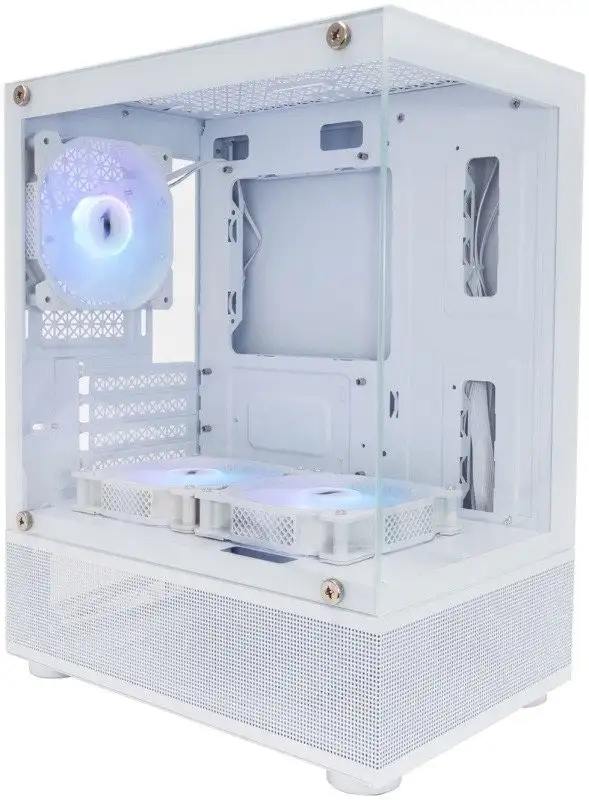 аквариум/Mini Tower, БП отсутствует, для плат micro-ATX/mini-ITX, в комплекте 3 вентилятора, окно: закаленное стекло, видеокарта до 310 мм, охлаждение ЦП до 165 мм, 1xUSB 2.0, 1xUSB-A 3.2 5Гбит/с, цвет белый