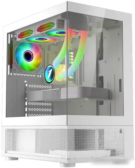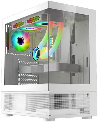 Корпус 1stPlayer MIKU Mi7-A белого цвета подойдет для создания игрового компьютера. Он выполнен из стали и оснащён прозрачным закалённым стеклом, что позволяет красиво показать внутренности. В корпусе есть место для материнской платы формата ATX, micro-ATX и mini-ITX, а также поддерживаются видеокарты длиной до 360 мм и кулеры высотой до 185 мм. Он оснащен пятью местами для вентиляторов: уже установлены три — два сверху и один сбоку, а всего можно установить пять вентиляторов, чтобы улучшить охлаждение. Передняя панель из стекла с двумя USB 3.2 Gen1 Type-A разъёмами и одним USB 2.0 обеспечивают быструю подключение устройств. В корпусе есть место для установки блока питания снизу, что повышает стабильность системы и упрощает сборку. Для хранения данных предусмотрены внутренние слоты для 2.5 и 3.5-дюймовых накопителей, а также отсек для твердотельных накопителей. Корпус удобно открывается и легко защищает компоненты, обеспечивая хороший обмен воздухом. Его габариты — 442 х 235 х 373 мм, а вес — около 5,2 кг.