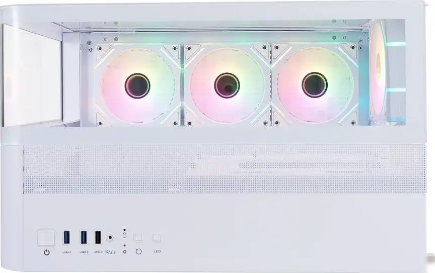 Mini Tower, БП отсутствует, для плат micro-ATX/mini-ITX, с 4 вентиляторами в комплекте, окно: закаленное стекло, видеокарта до 400 мм, охлаждение ЦП до 157 мм, пылевые фильтры, 1xUSB 2.0, 2xUSB-A 3.2 5Гбит/с, цвет белый